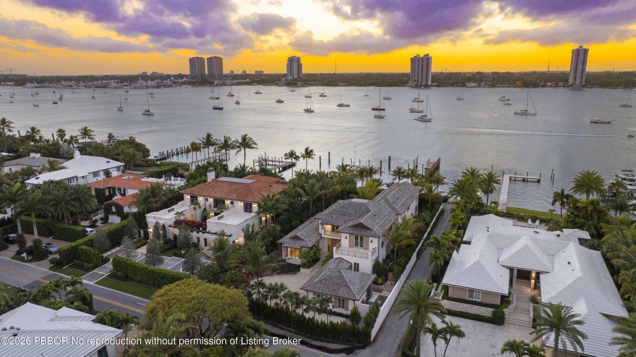 Brand-new construction on North Lake Way built by Wildes Builders and LaBerge and Menard Architect's. Featuring 90 feet of waterfront, a new dock, and luxurious interiors. Upon entering, you are greeted by a grand foyer with Jerusalem Gold limestone flooring that leads into the spacious living areas. The main floor boasts an open kitchen equipped with Gaggenau and Sub-Zero appliances, Taj Mahal stone countertops, an island with seating, and a breakfast area. This space seamlessly flows into the ...Brand-new construction on North Lake Way built by Wildes Builders and LaBerge and Menard Architect's. Featuring 90 feet of waterfront, a new dock, and luxurious interiors. Upon entering, you are greeted by a grand foyer with Jerusalem Gold limestone flooring that leads into the spacious living areas. The main floor boasts an open kitchen equipped with Gaggenau and Sub-Zero appliances, Taj Mahal stone countertops, an island with seating, and a breakfast area. This space seamlessly flows into the family room, which opens to a covered outdoor loggia overlooking the large pool. Adjacent to the kitchen is a butler's pantry, also outfitted with Taj Mahal stone countertops, and a private dining room for formal gatherings. The separate living room provides additional space for relaxation or or hosting guests. This level also features two powder rooms, a downstairs laundry room, and access to the two-car garage. The home is further enhanced by a whole-house generator for added convenience and security. In addition, this home has a two-car garage with height for car lifts.An elevator or staircase takes you to the second floor, where a beautiful landing area opens to an oversized terrace. The crown jewel of this level is the primary suite, which includes two large walk-in closets and two luxurious bathrooms one with a separate soaking tub and Vanilla Onyx stone finishes, and the other with Grigio Collemandina marble. The primary suite's private terrace faces west, offering breathtaking sunset views over the Intracoastal.This home includes four additional guest bedrooms, each with its own en-suite bathroom. Two are located on the main floor, while the other two are upstairs, one of which features a private terrace. A private office with its own balcony provides a serene retreat for work or relaxation.Deeded beach access on Kenlyn Road.